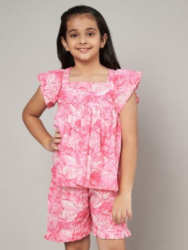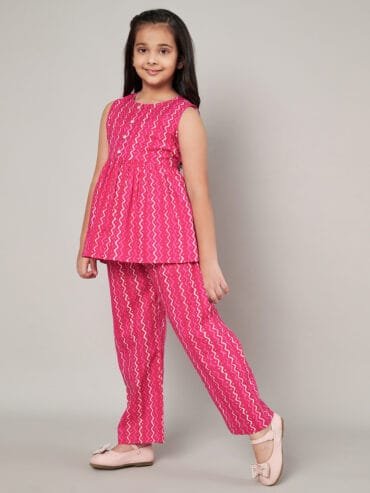 Girls Pink Color Geometric Print Top & Palazzo Co-Ords Set