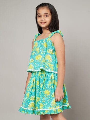 Girls Sea Green Color Top & Skirt Co-Ord Set