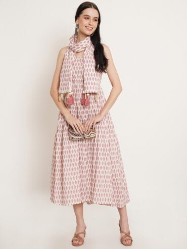 Women’s CottonOff-White Color Floral Print Maxi Dress with Scarf