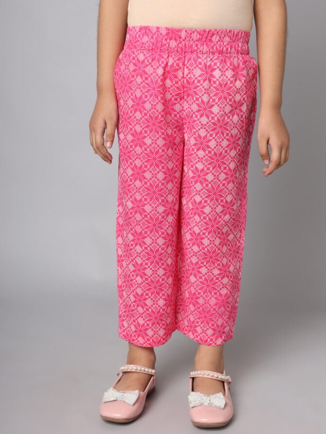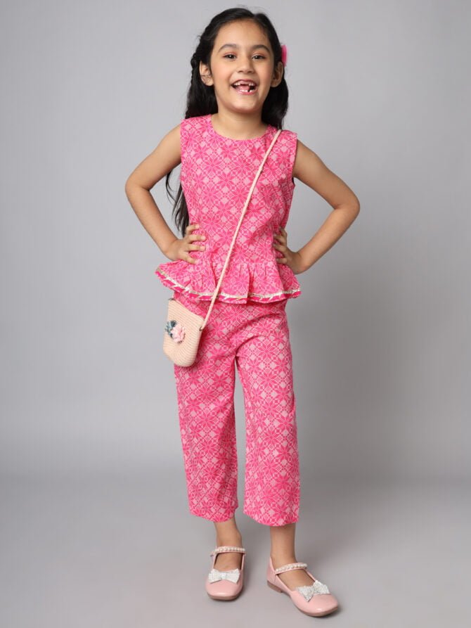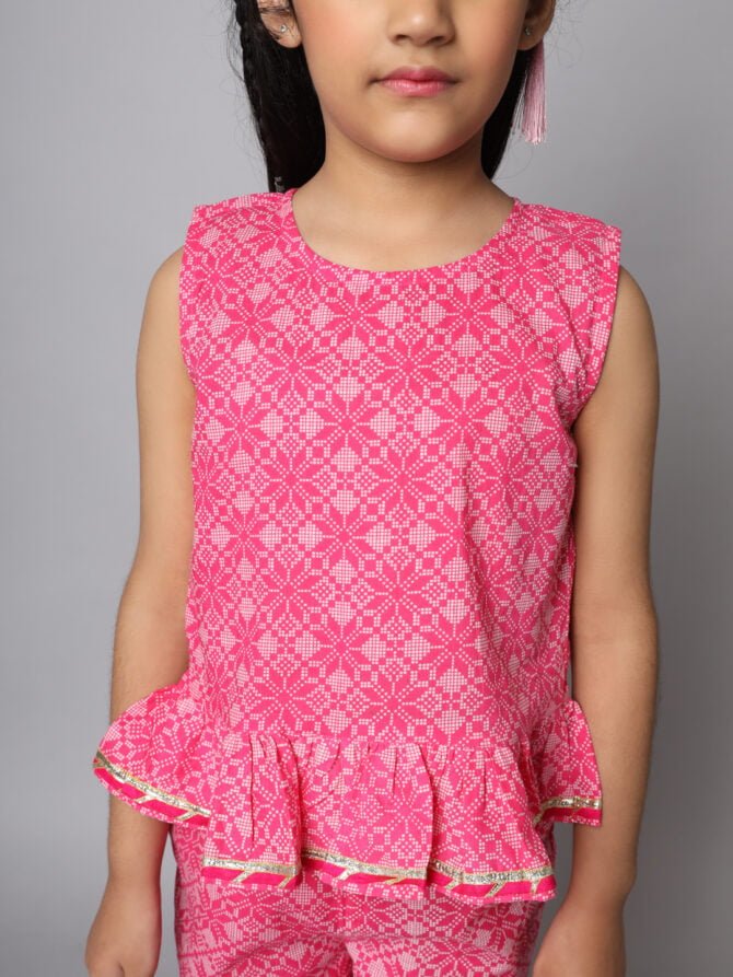 Product Title: FABRIC FITOOR Girls Pink Color Geometric Print Top & Palazzo Co-Ord Set