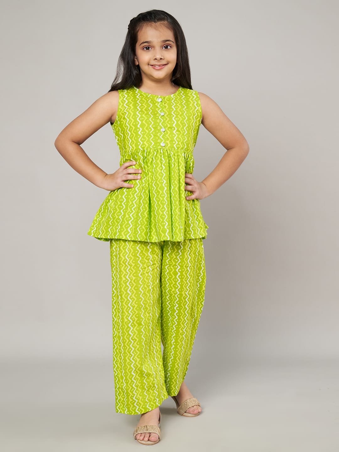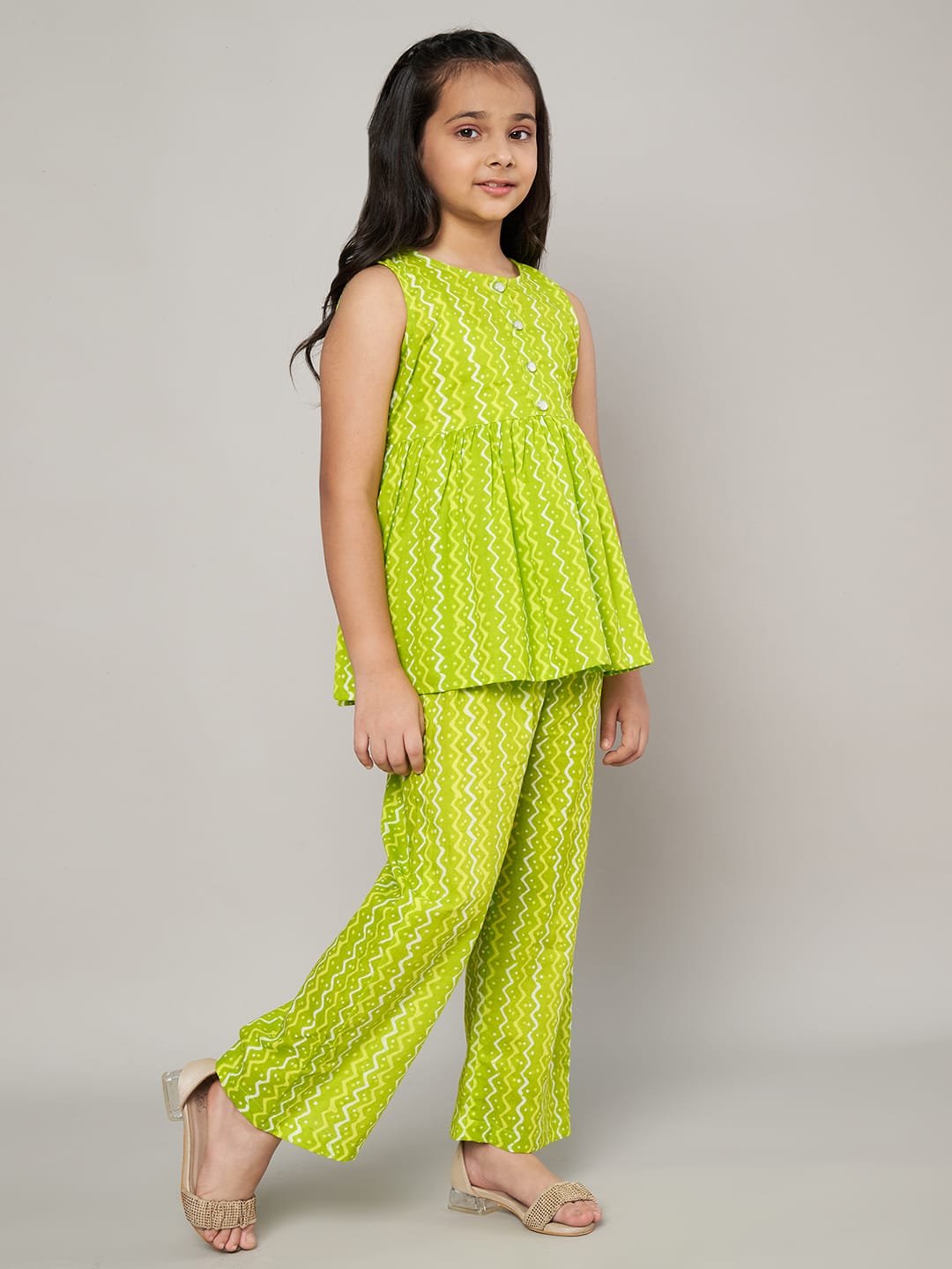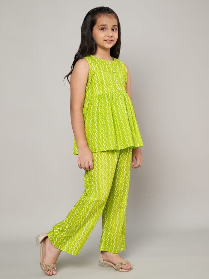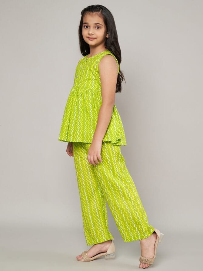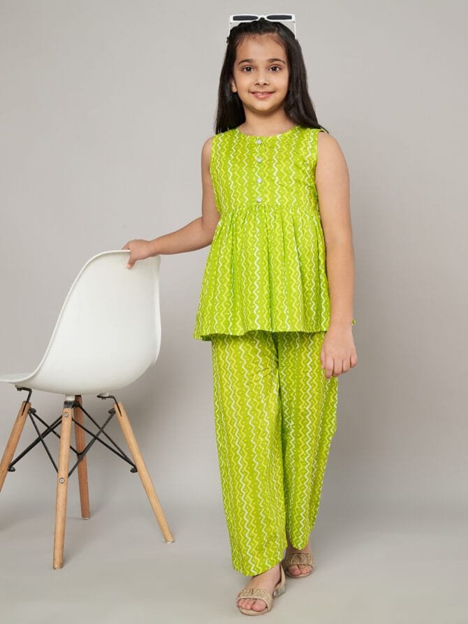 Fabric Fitoor Girls Lime Green Color Co-Ords Set