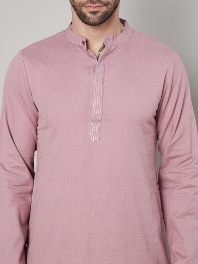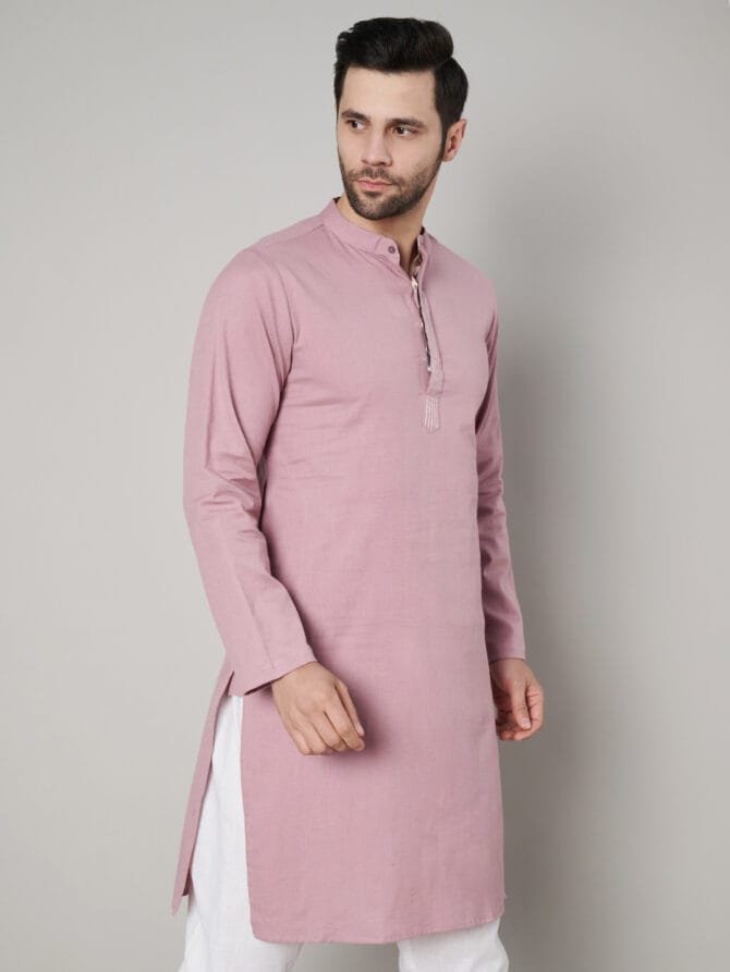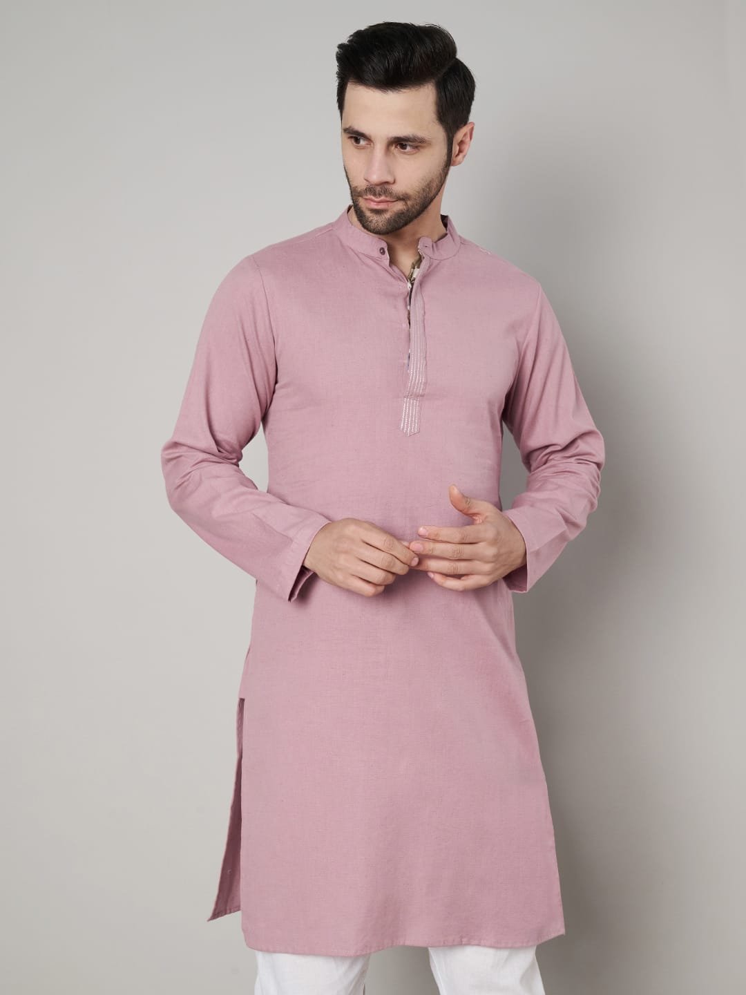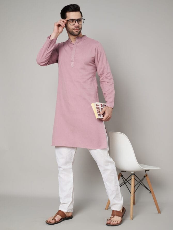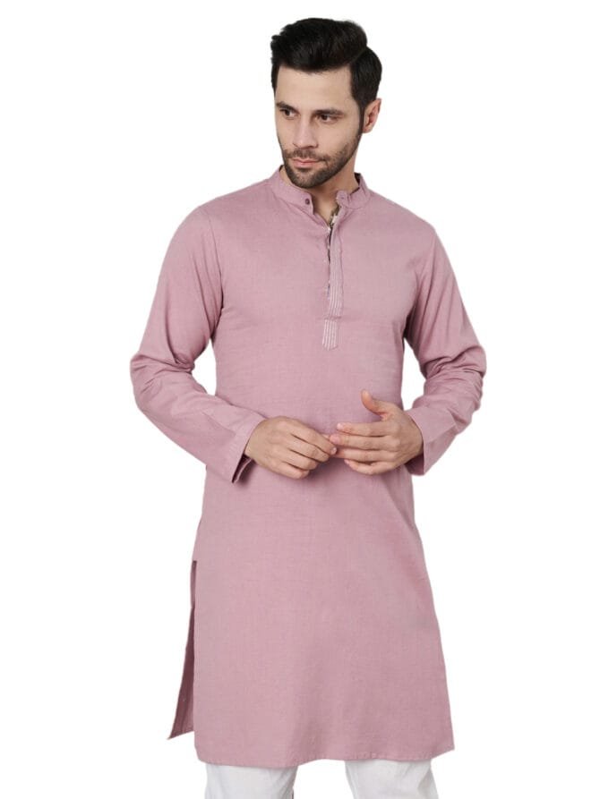 Perfect For: This traditional rose pink kurta is a must-have for festive occasions, casual gatherings, or formal events. Its soft fabric and refined design make it an ideal choice for a polished yet comfortable look.