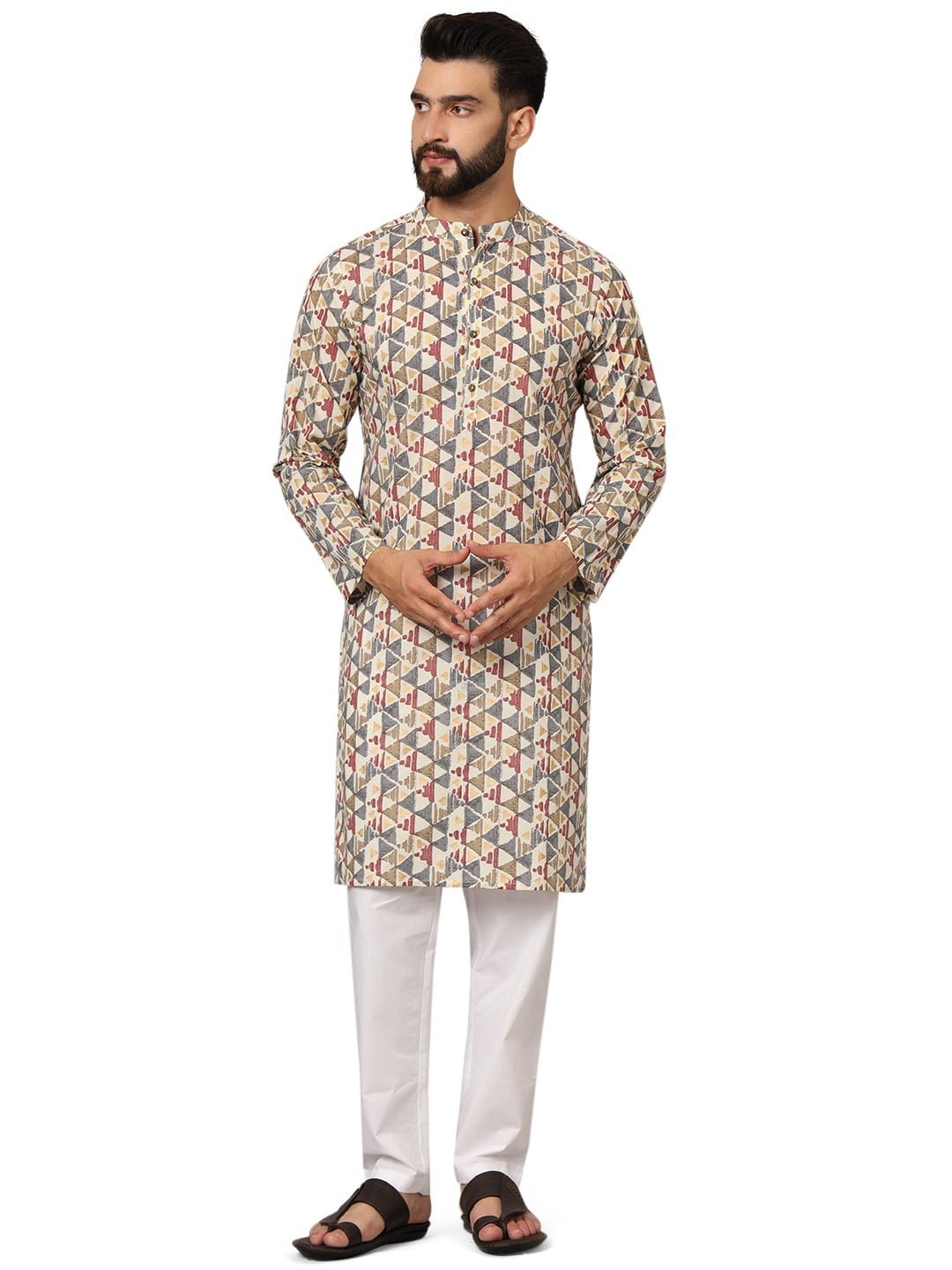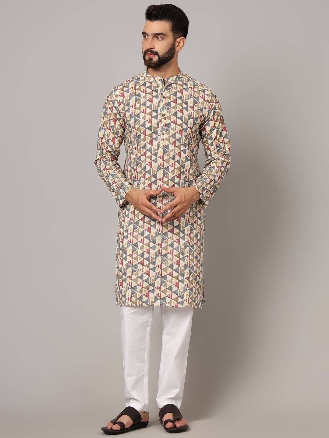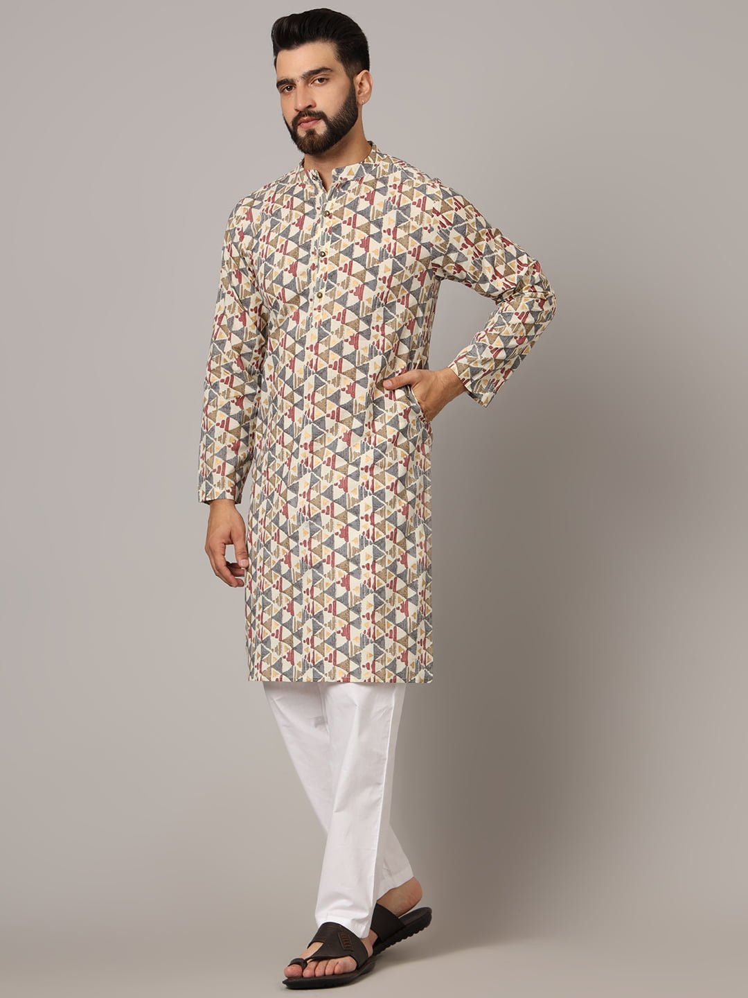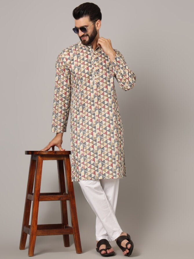 Product Title: FABRIC FITOOR Men’s Pure Cotton Geometric Print Long Kurta with Pockets