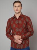 Product Title: Men’s Pure Cotton Floral Print Maroon Color Full Sleeve Shirt