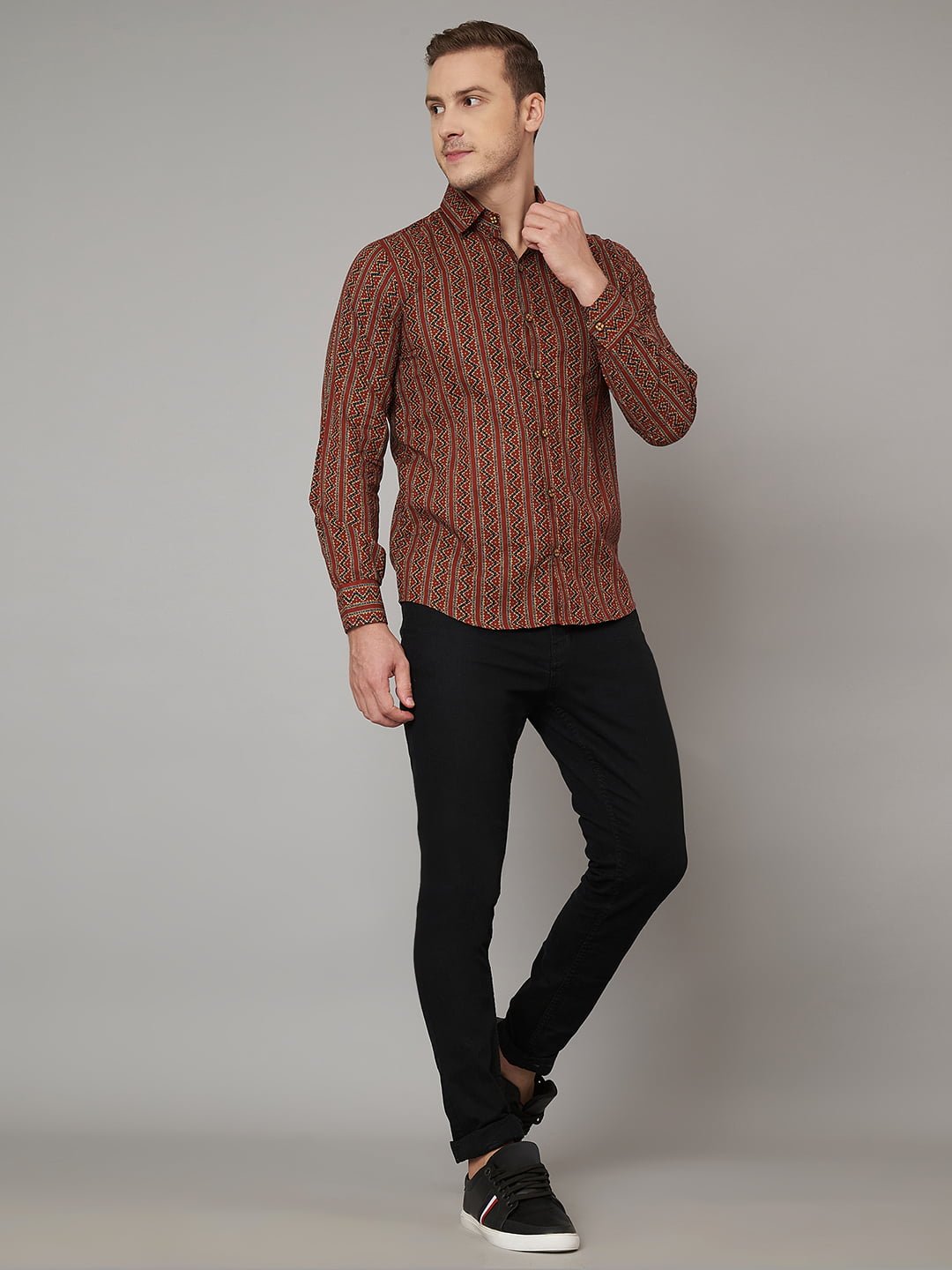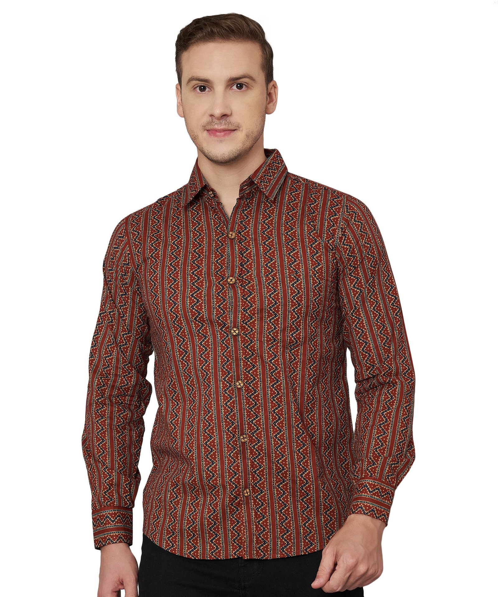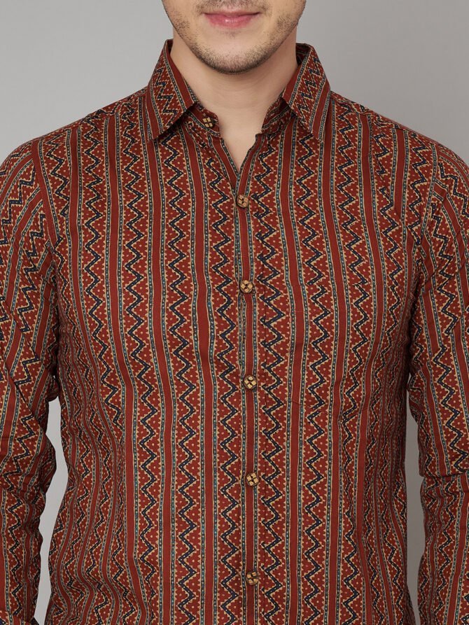 Product Title: Men’s Pure Cotton Maroon Geometric Print Full Sleeve Shirt