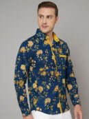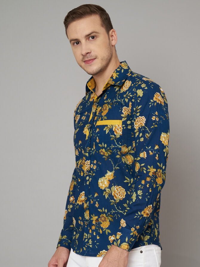 Product Title: Men’s Pure Cotton Navy Blue Floral Print Full Sleeve Shirt