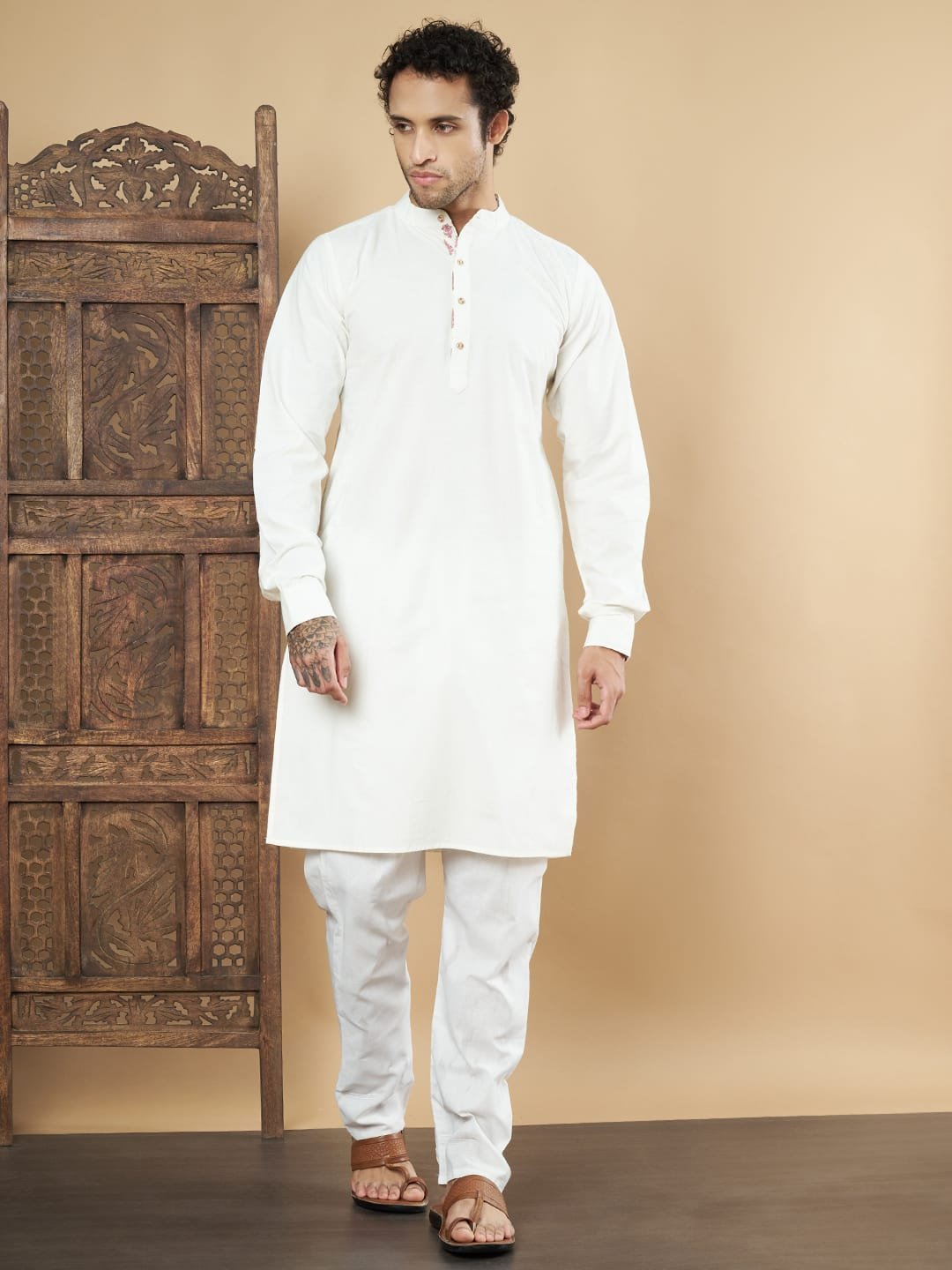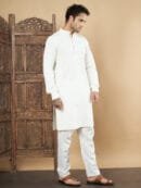 Perfect For:This solid white cotton kurta with printed pockets is a versatile pick for casual outings, festive celebrations, or semi-formal events. Its classic design and lightweight fabric make it a must-have for those who value both style and comfort.