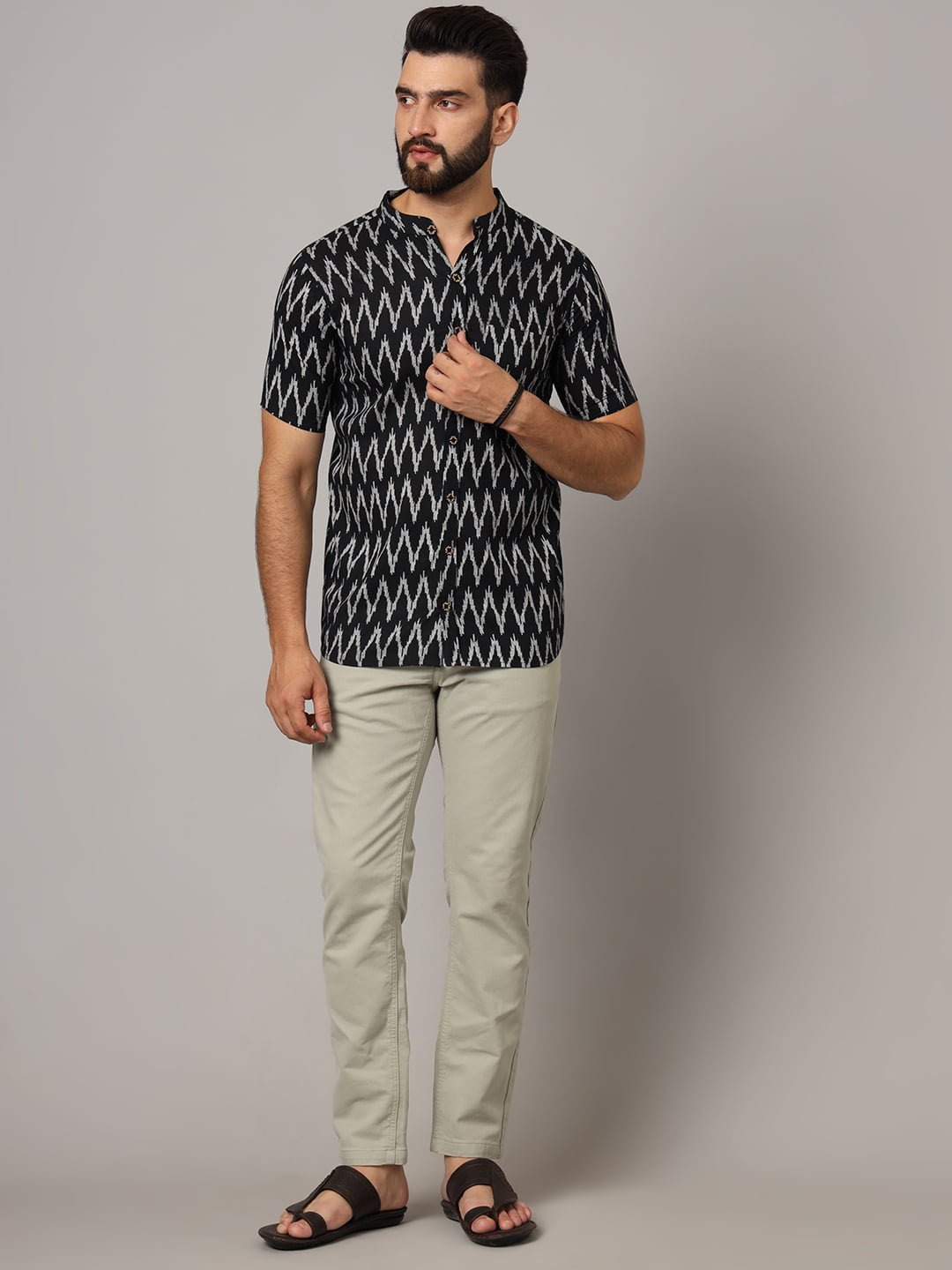 Product Title: FABRIC FITOOR Men’s Pure Cotton Chevron Print Mandarin Collar Black Color Shirt