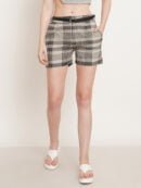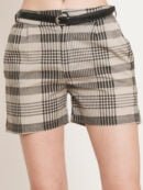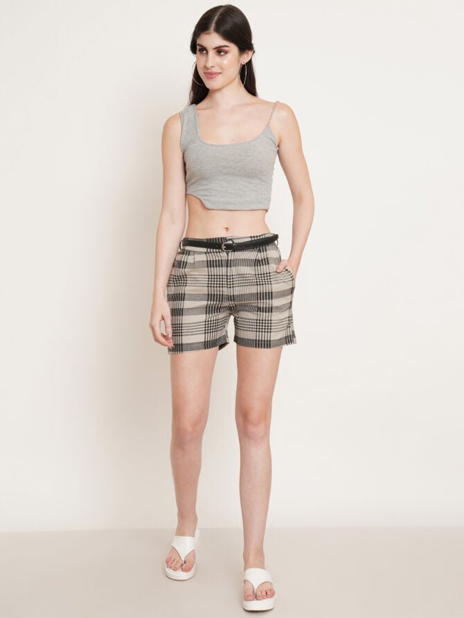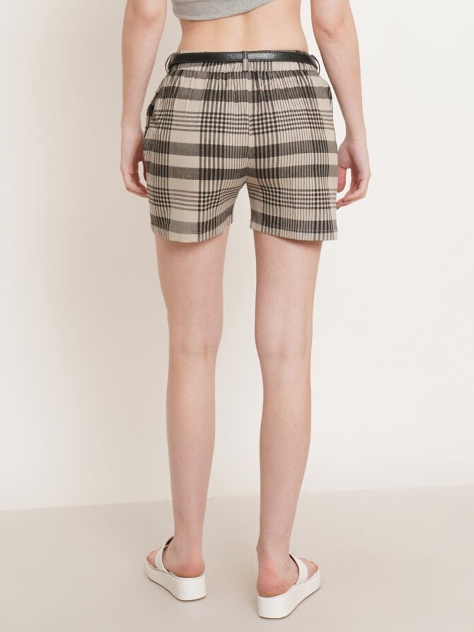 Product Title: Women’s Checkered Print Cotton Shorts with Leather Belt and Pockets