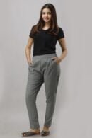Product Title: Women’s Grey Cotton Slub Trousers with Elasticated Waist and Side Pockets