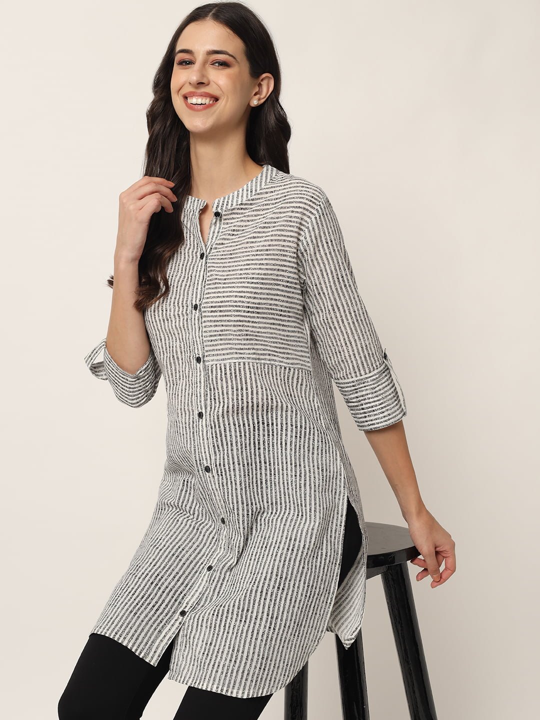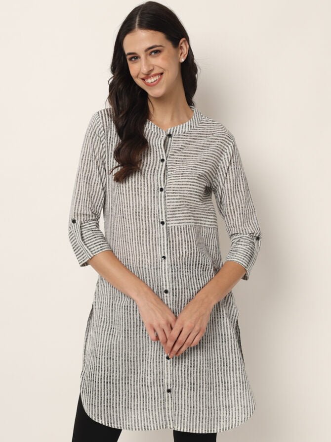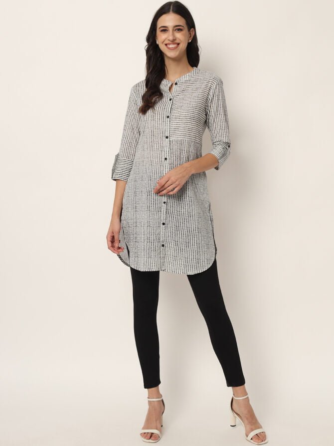 - Collar: Stylish mandarin neck that enhances the shirt’s contemporary appeal.