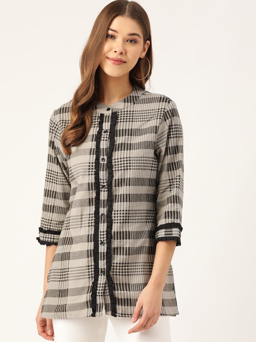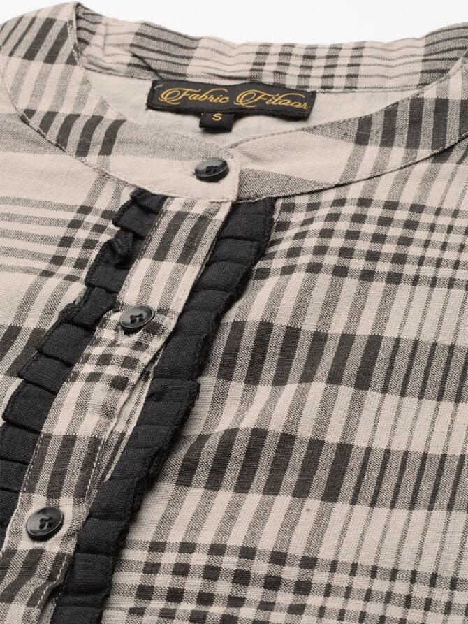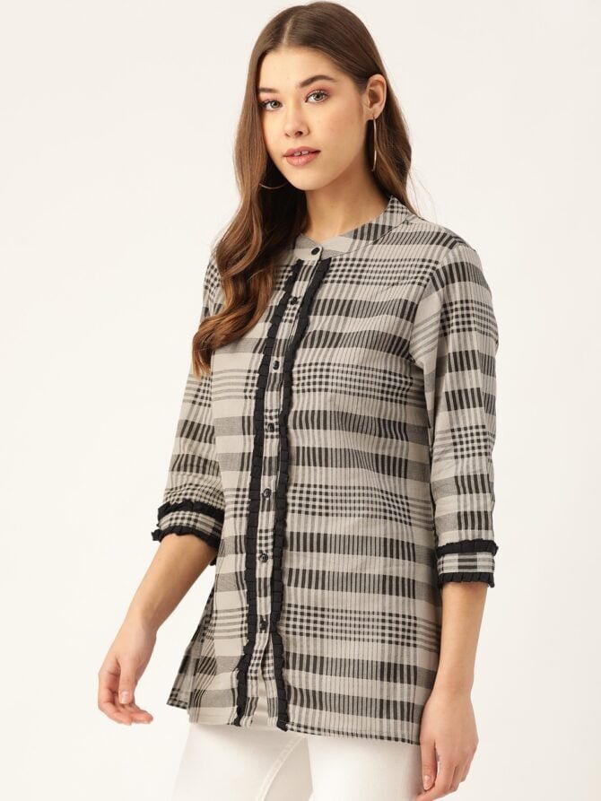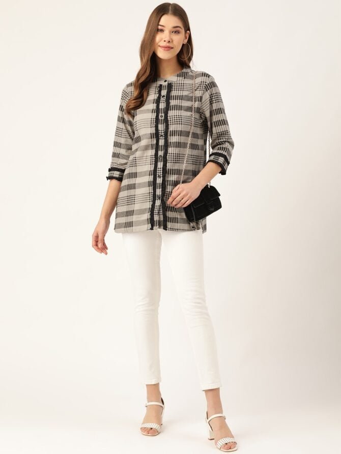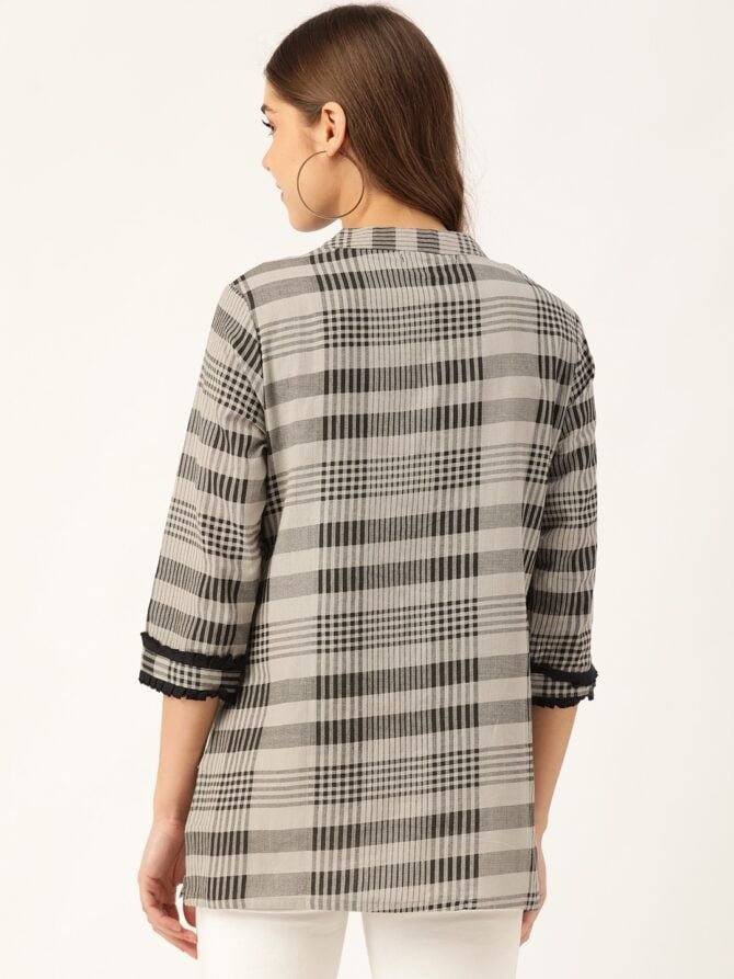 Complete The Look: Whether you’re headed to the office or enjoying a weekend outing, this Checks Print Shirt pairs beautifully with jeans, trousers, or skirts for a polished look. Its versatility and comfort make it a must-have for your wardrobe.