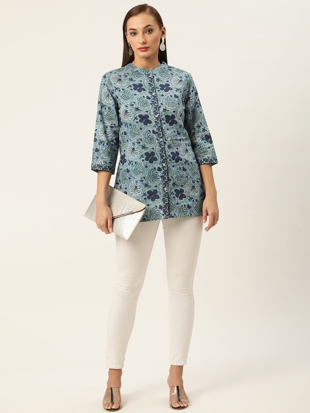- Neckline: Stylish Mandarin Collar with fancy buttons, adding an elegant touch to your look.