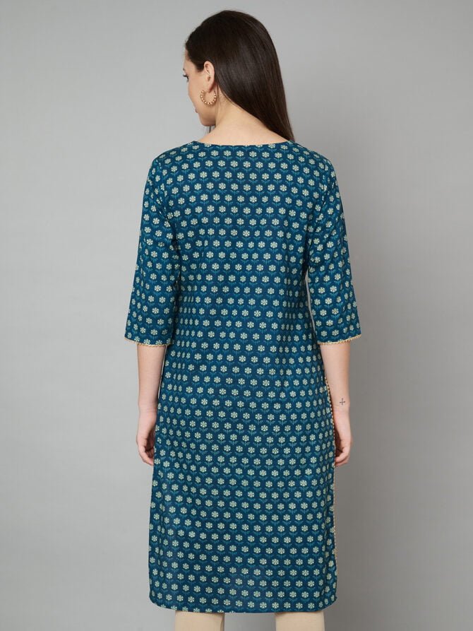 With a knee-length asymmetric hem, this kurta is designed for comfort and style. The side slits and machine-weave fabric ensure ease of movement and breathability, making it ideal for all-day wear.