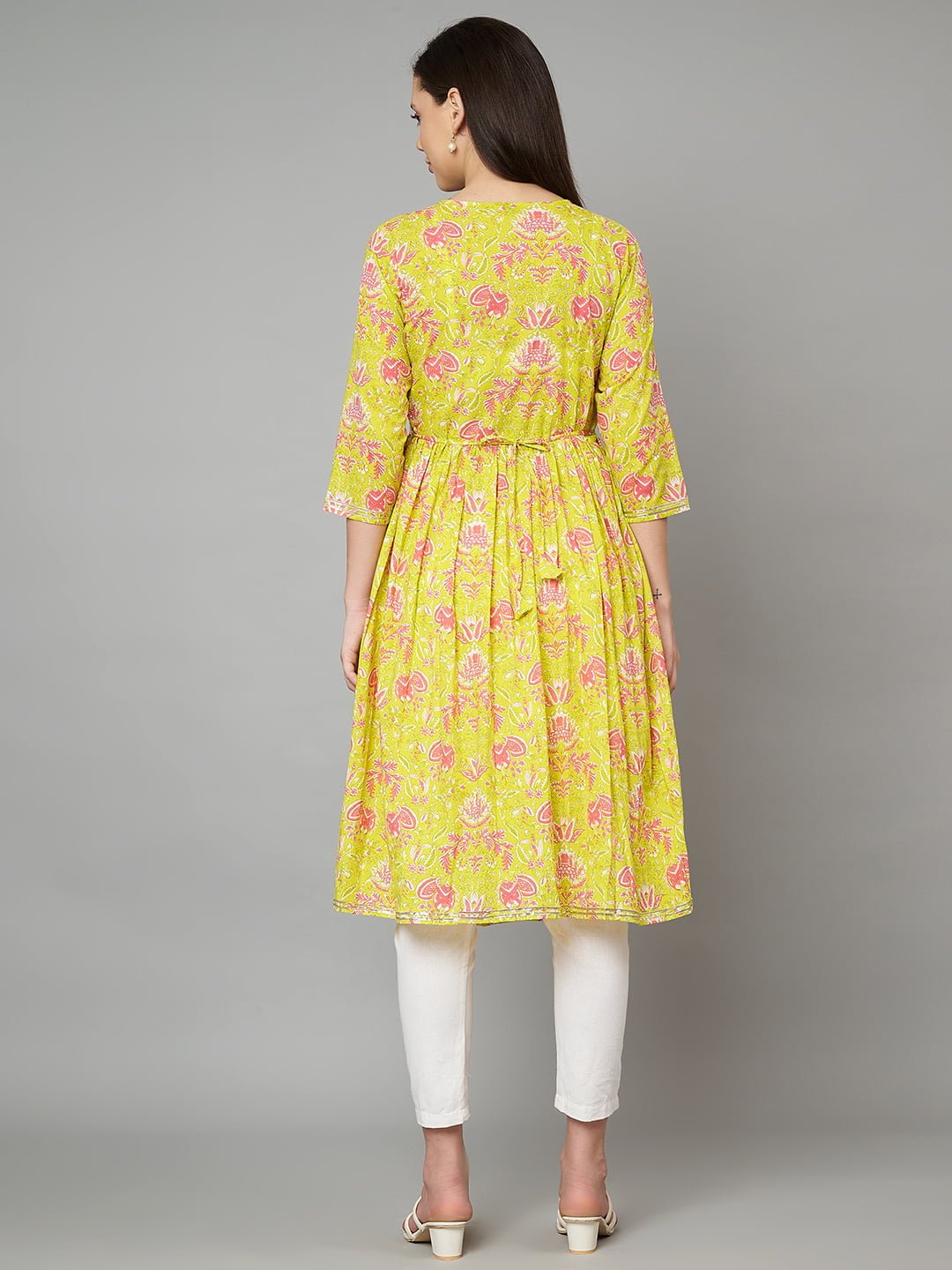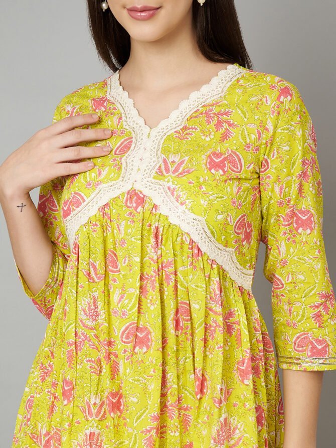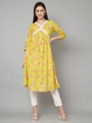 Be the first to review “Womens Jaipuri Pure Cotton Yellow & Pink Color Alia Cut Kurta”
