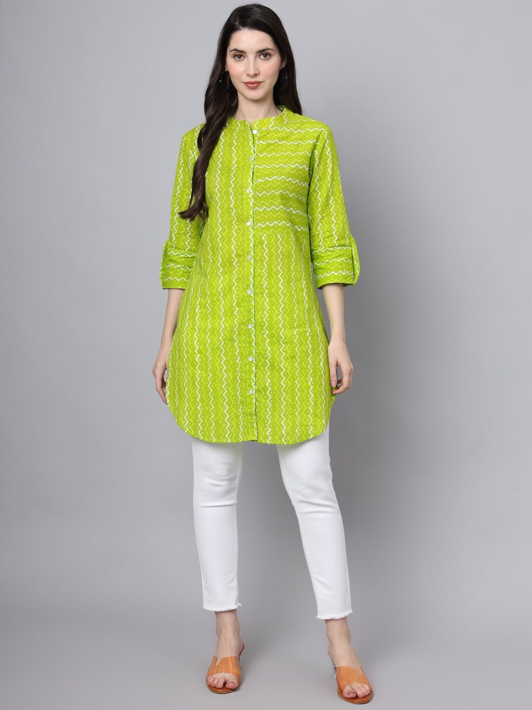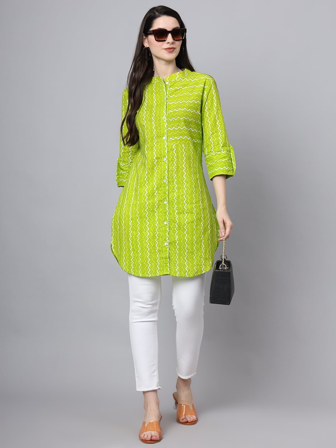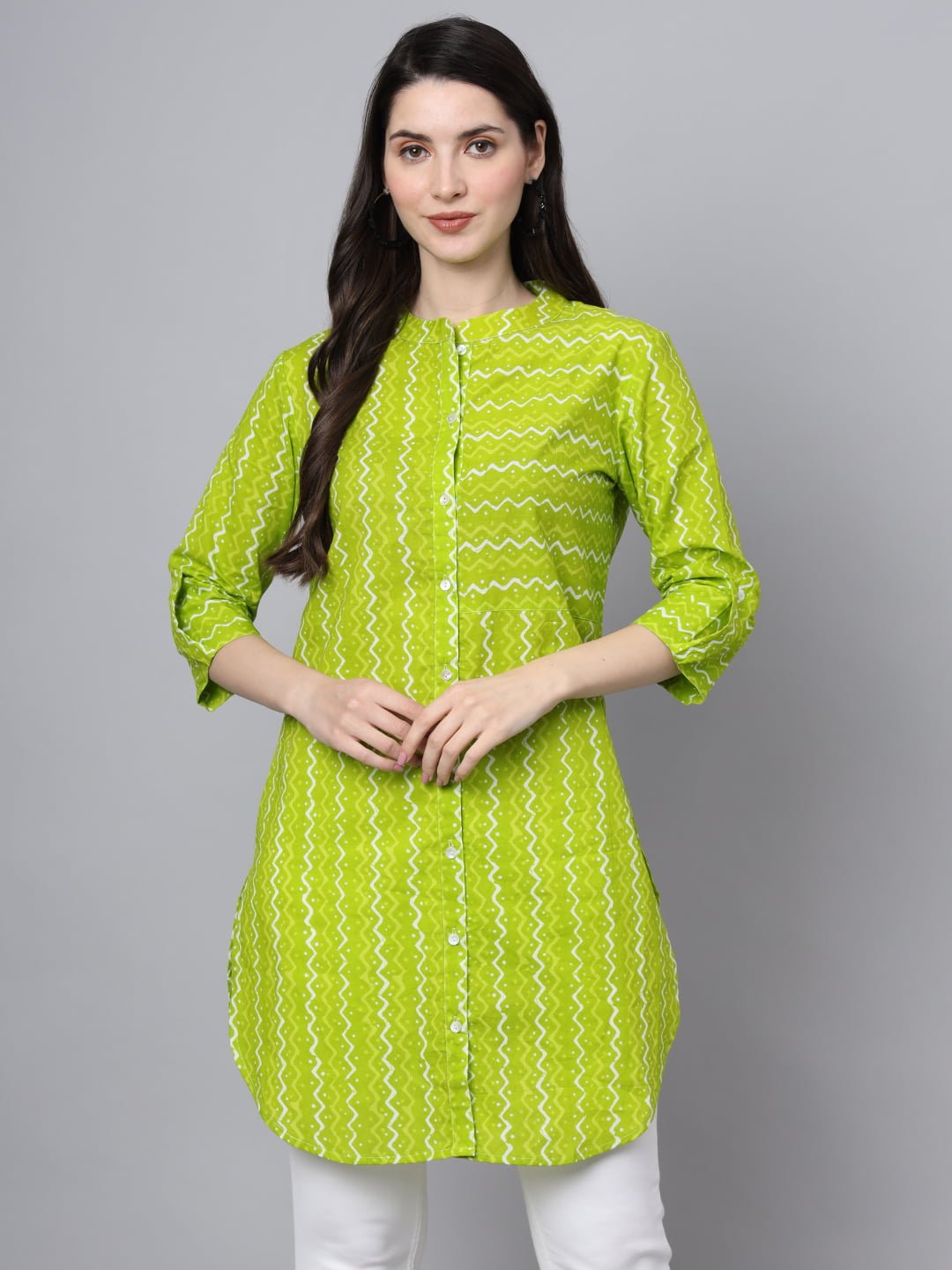 Make a lasting impression with the Women’s Cotton Lime Green Color Long Shirt, a perfect blend of comfort, style, and elegance that will brighten up your collection!