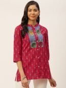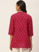 Elevate your casual wardrobe with the FABRIC FITOOR Women’s Pure Cotton Red Color Ikat Print Casual Shirt, a perfect blend of style and comfort.
