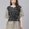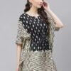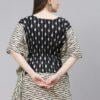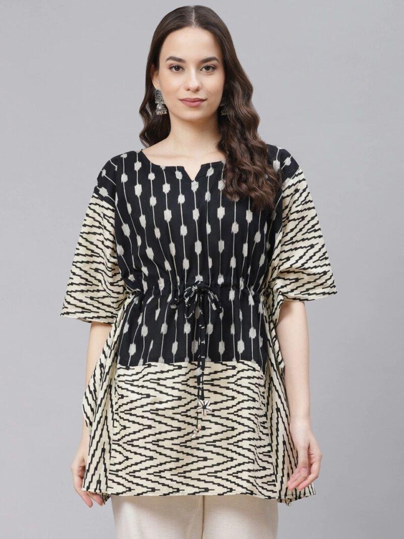 Womens Ikat Print Cotton Black And White Kaftan Top