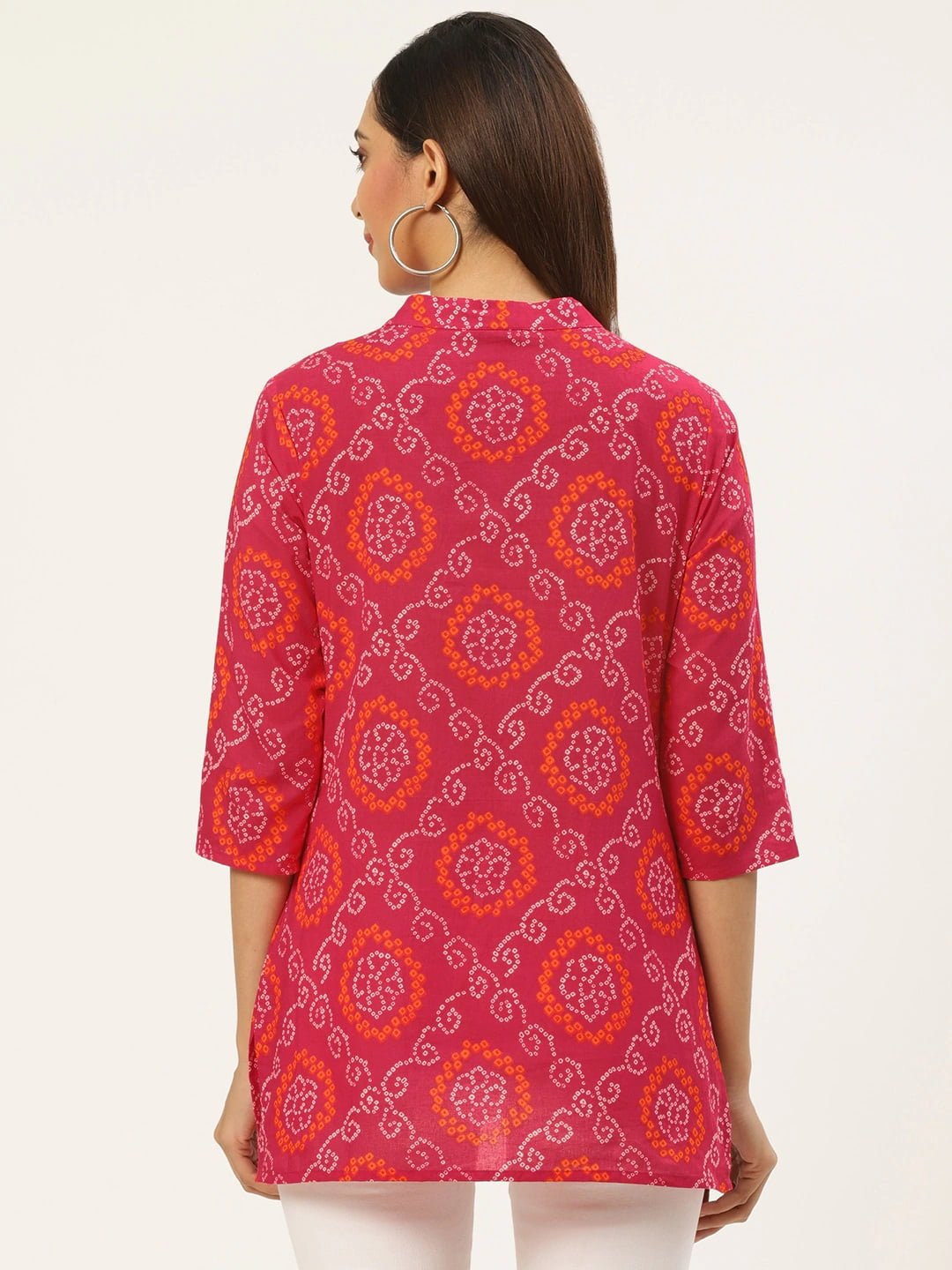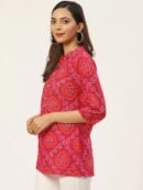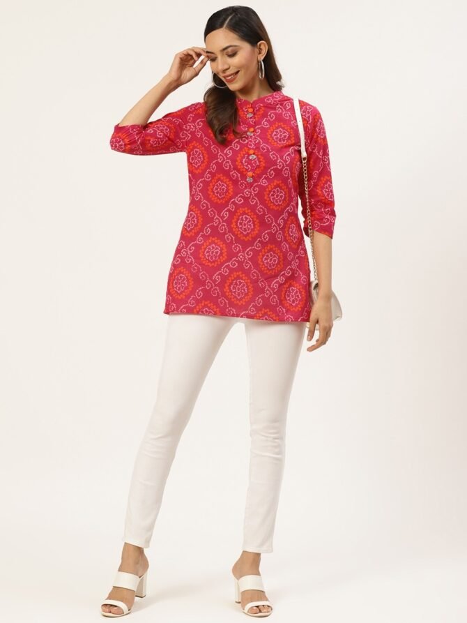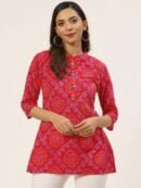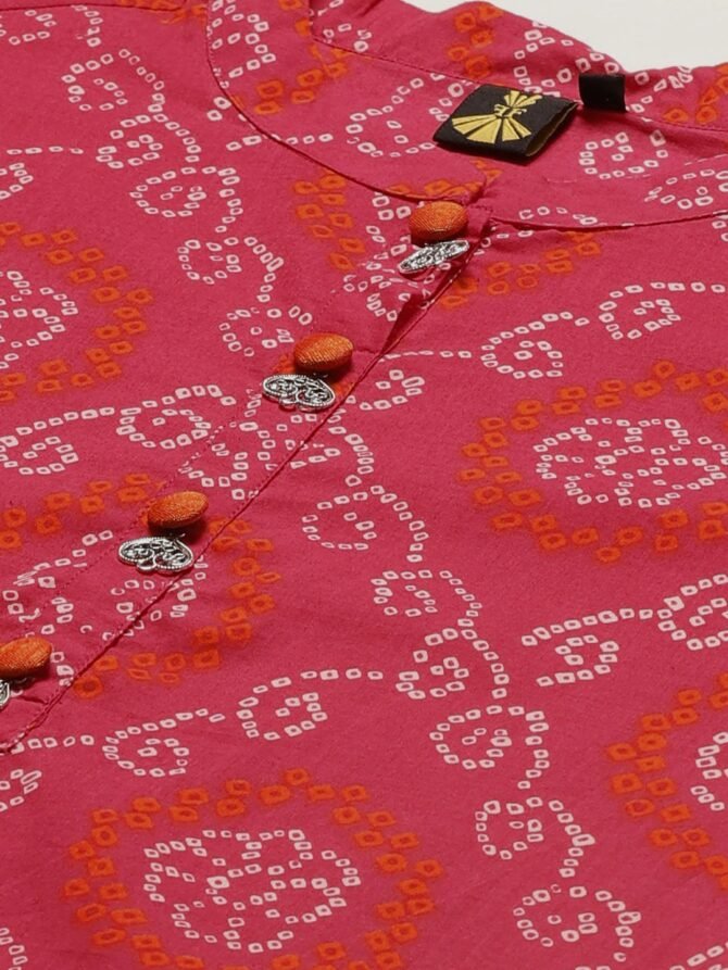 Embrace elegance and comfort with the FABRIC FITOOR Women’s Cotton Bandhej Print Kurta. This stunning hot pink kurta is a perfect blend of traditional craftsmanship and contemporary style, making it a must-have addition to your wardrobe.
