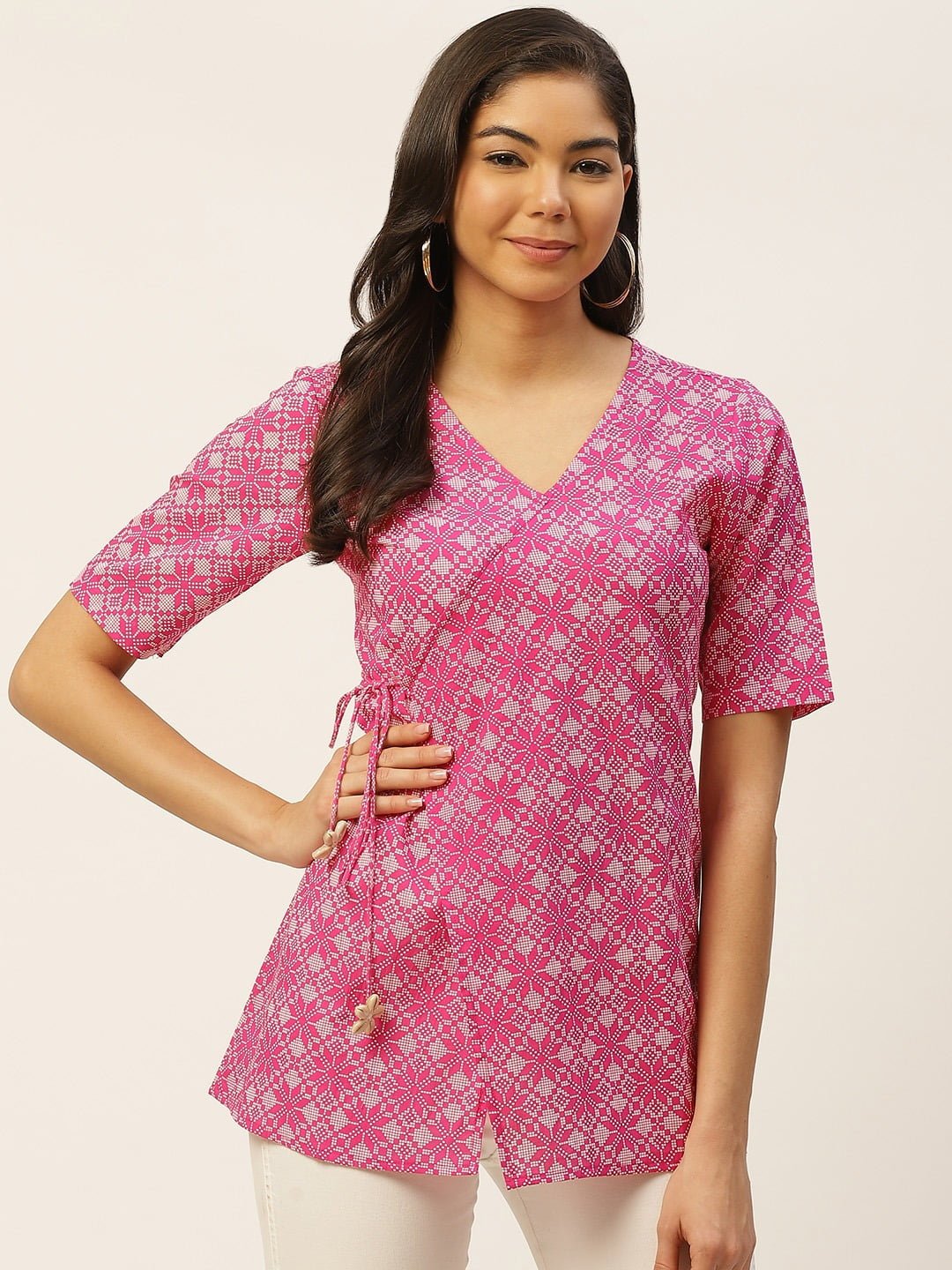 Elevate your everyday wardrobe with the FABRIC FITOOR Women’s Pure Cotton Wrap Top. Designed for the modern woman, this stylish pink top blends contemporary aesthetics with traditional charm, making it a versatile piece for any occasion.