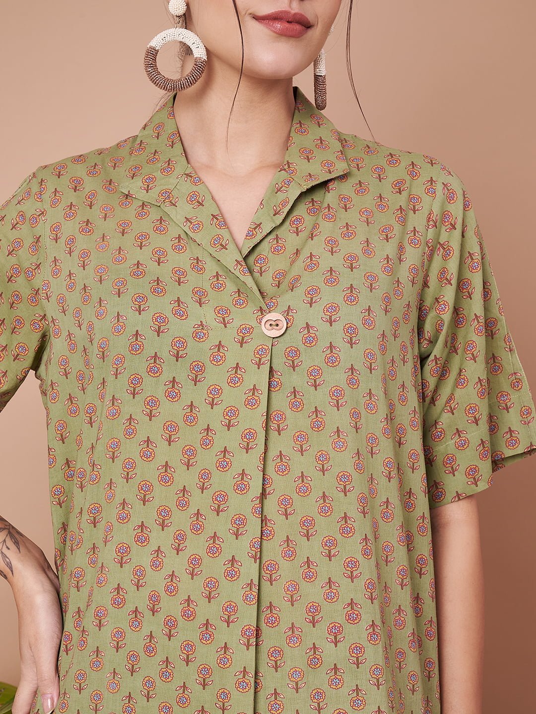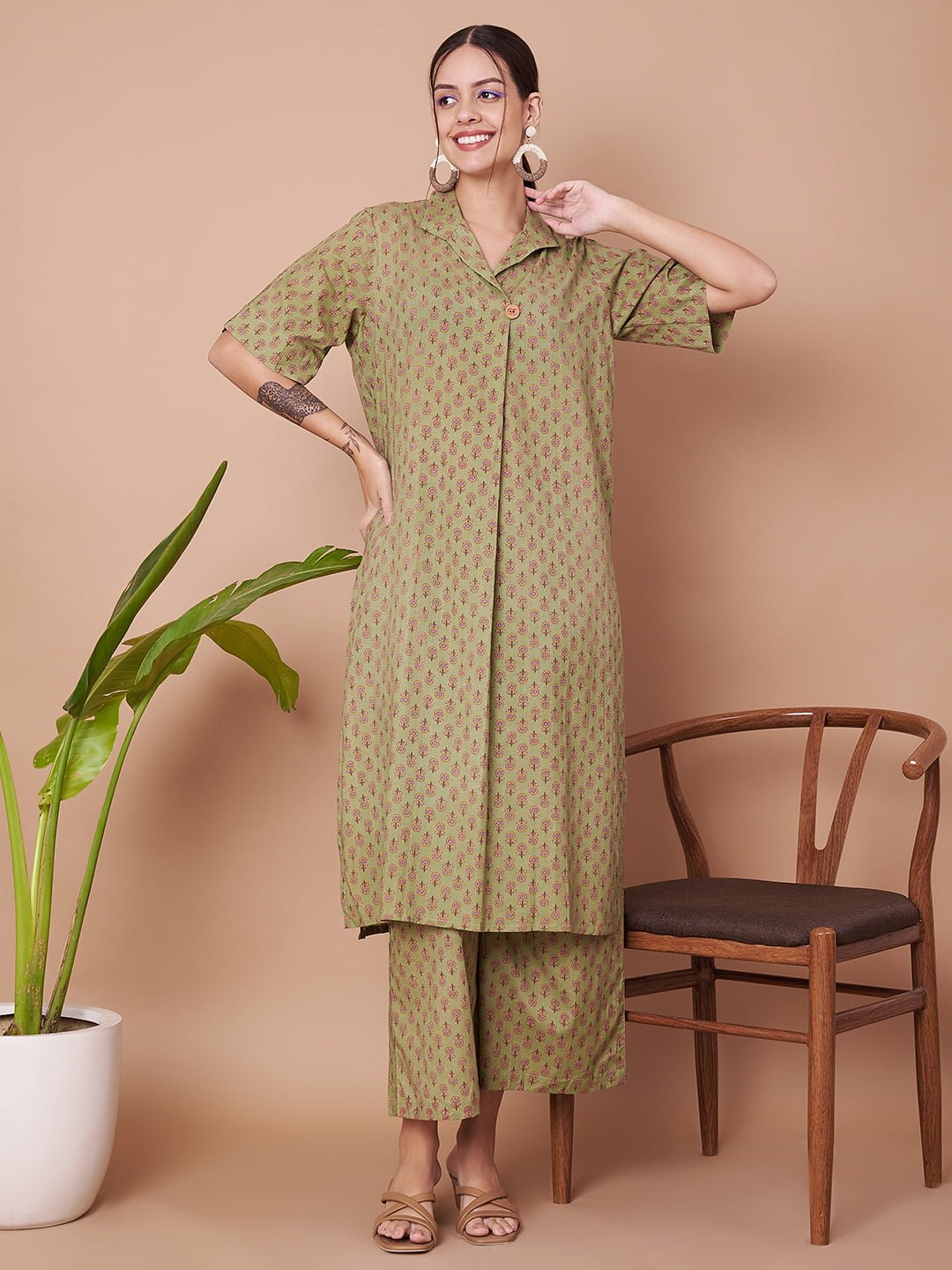 Embrace Effortless Elegance: Enhance your wardrobe with this stylish and comfortable olive green kurta and palazzo set from Fabric Fitoor. Perfectly designed for both casual and festive occasions, this set offers a blend of comfort and elegance.