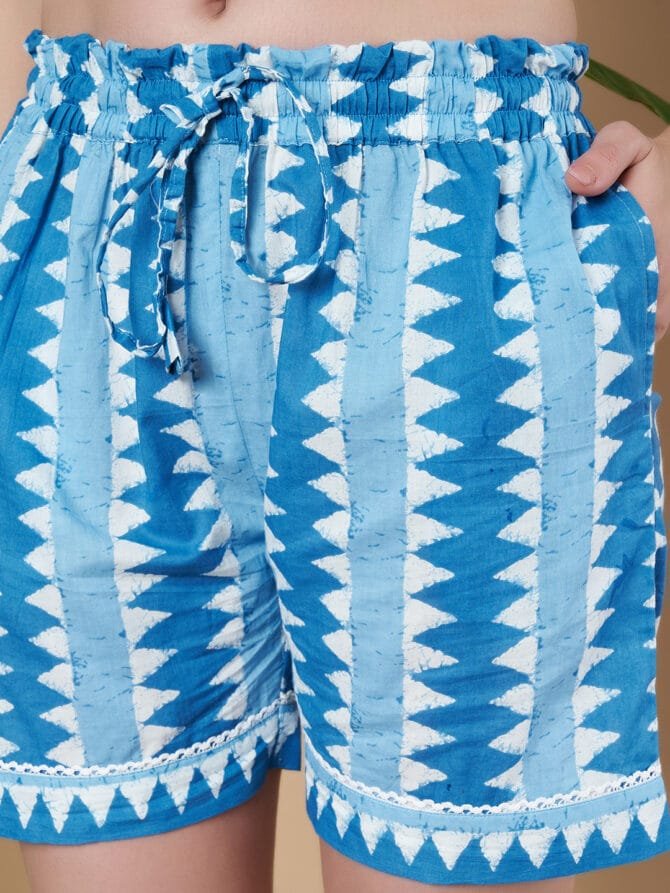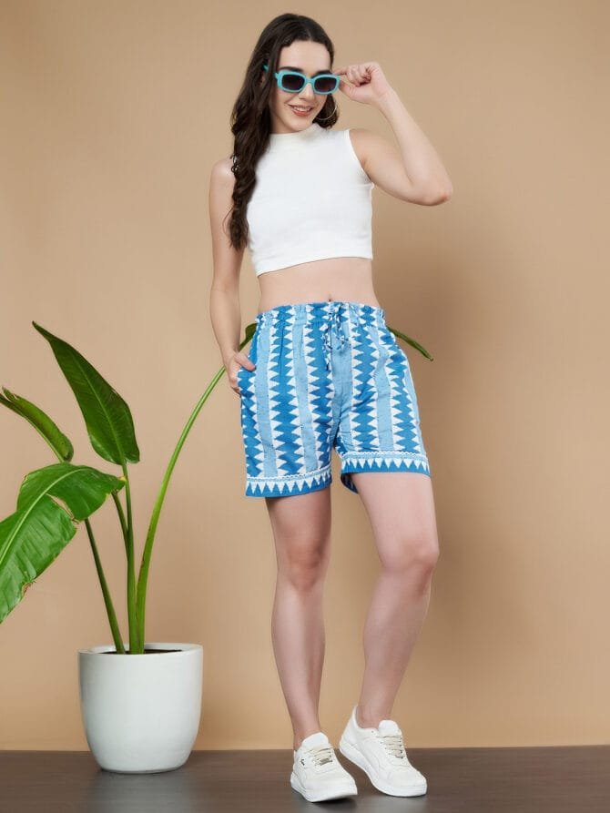 Embrace comfort and style with Fabric Fitoor Women’s Cotton Jaipuri Print Shorts—the perfect addition to your casual wardrobe. Made from high-quality, breathable cotton, these shorts feature an intricate Jaipuri print, combining traditional design with modern comfort.